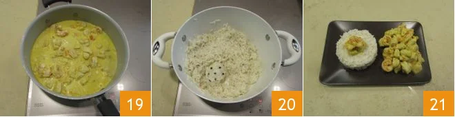 and stir until incorporated with the other ingredients 19. Adjust the salt and turn off the heat. Meanwhile, the rice will also be cooked 20. All you have to do is serve the chicken and shrimp curry with basmati rice while still hot 21!