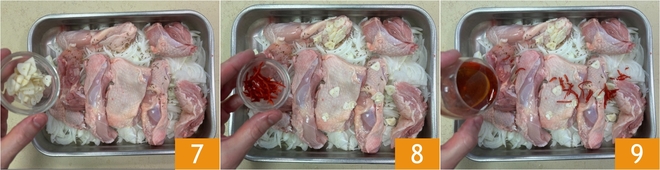 Add the garlic 7, chili pepper 8, and red wine vinegar 9.