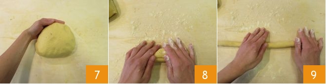 until you get a uniform dough 7. Then take a portion and with your hands roll it into a rope 8 about 3/4 inches thick 9.