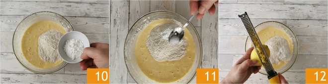 then proceed with the baking powder 20, salt 11, and lemon zest 12.