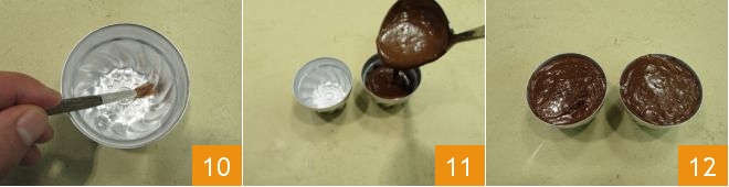At this point, take the molds (if using aluminum ones, you can lightly grease them with light almond oil or vegetable oil) 10. Pour the mixture into the molds 11 to the brim 12 and let it cool for at least 3 hours, first at room temperature and then in the refrigerator.
