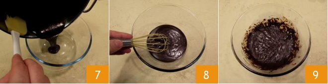 Transfer the ganache you have prepared into a bowl 7 and let it cool; when the mixture is cool but not yet completely solid, whip energetically with the whisks 8 to obtain a lighter and creamier mixture: the ganache should not harden too much otherwise it will be difficult to work with 9.
