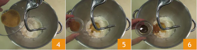 the brown sugar 4, the cinnamon 5, and the vanilla extract 6.