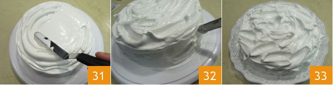and on the surface. Spread on both the top 31 and the edge 32 to create a wavy decorative effect 33. Your cloud cake is ready to be enjoyed!