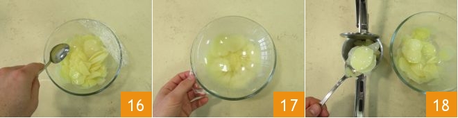and slicing them thinly 13, place them in a bowl and pour enough water to just cover them 14. Cover with plastic wrap 15