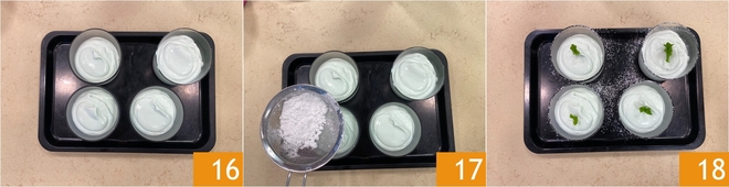 When you have filled them all 16, garnish with powdered sugar 17 and mint leaves 18.