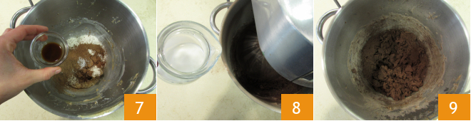 Flavor with vanilla extract 7 and mix again with the whisks. While the mixer is on, slowly pour in the milk 8 and continue until absorbed 9