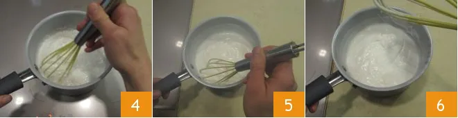 Place on the heat and continue stirring 4 until reaching the desired thickness, then remove from the heat and keep stirring (5-6).