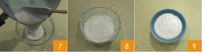 Pour the mixture into a bowl 7. Cover with cling film touching the surface 8 and let it cool before enjoying your coconut cream 9.