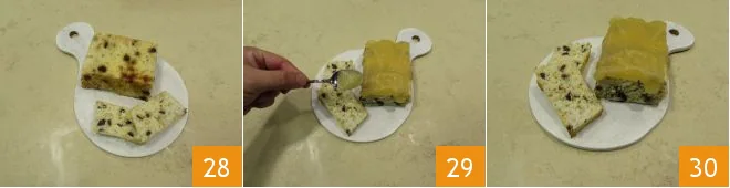 You can choose to serve the cod terrine by cutting a few slices 28 and placing the apple sauce on them and on the terrine itself 29. Your cod with apple sauce is now ready to be served and enjoyed 30!