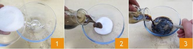 To prepare the coffee granita with cream, start by making 250 ml (8.45 oz) of espresso coffee and let it cool. Then pour the granulated sugar into a bowl 1 and dissolve it by adding the espresso coffee now at room temperature 2. Use a hand whisk to combine the ingredients 3.