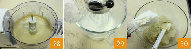 until you get a light and foamy mixture (if you don't have a mixer, use an electric whisk). Combine the whipped egg whites with the mixture 10. Then add the all-purpose flour 11 and hazelnut flour 12