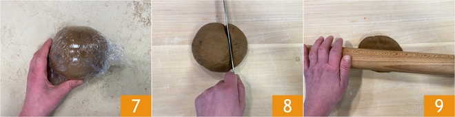 When you have obtained a smooth dough, form a ball, wrap it in plastic wrap, and let it rest for at least 30 minutes at room temperature 7. After the resting time, take the dough and cut off a portion 8, keeping the remaining part covered. Roll it out with a rolling pin to flatten it to a thickness of 1/4 inch 9.