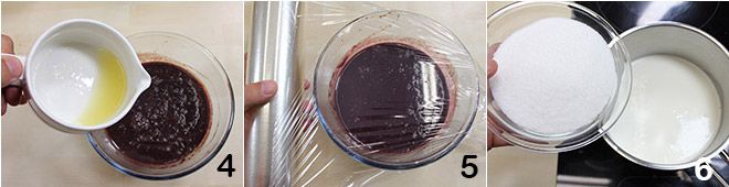 and add the juice obtained to the grape pulp 4, then mix well with a spoon, cover with plastic wrap 5, and place everything in the freezer to cool (it should become very cold but not hard). Meanwhile, cook the cream and sugar in a saucepan over low heat until the sugar has completely dissolved 6 and reached a temperature of 181°F (you can check it with a food thermometer).