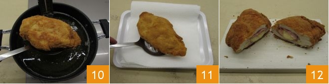 Drain the cordon bleu 10 and place it on a tray lined with paper towels to blot excess oil 11. Serve your cordon bleus piping hot and gooey! 12.