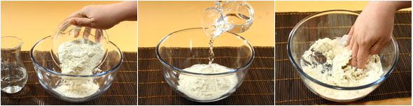 Dissolve the salt in the lukewarm water, then in a bowl, pour the masa harina, the water containing the dissolved salt, and the oil; knead very well and then let the dough rest for 15 minutes.