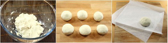 Cut two squares of parchment paper measuring 12 inches x 12 inches, and once 15 minutes have passed, take the dough and divide it into 6 equal pieces with which you will form 6 balls.