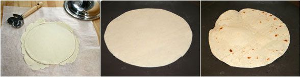 Heat a non-stick pan (or crepe pan) on the stove, and when it's hot, take the tortilla placed on the parchment paper, lay it in the pan, and then gently remove the paper; cook the tortilla at moderate heat for a maximum of two minutes, turning it on both sides.