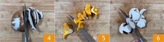 Do the same with the portobello 6, chanterelles 5, and porcini 6.