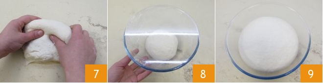 Then transfer the dough onto a work surface and knead it for at least 10 minutes until it becomes smooth 7. Continue kneading the dough until you can form it into a spherical shape 8. Once you've achieved a smooth dough ball, place it in a lightly floured bowl to prevent sticking, cover it with plastic wrap, and let it rise in a warm, draft-free environment for at least two hours, or until the dough has doubled in size 9.