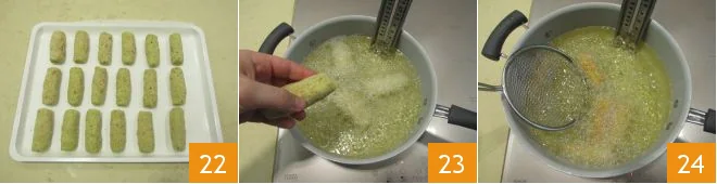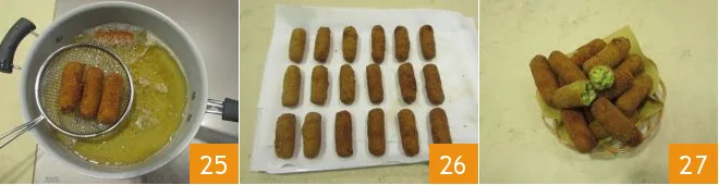 and repeat for all the other croquettes 22. Pour plenty of seed oil into a pan and let it heat up to 338°F (use a kitchen thermometer to measure the exact temperature), then pour in 4-5 croquettes at a time 23 in this way you will maintain a constant temperature and turn them occasionally to even out the cooking 34.