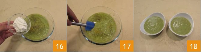 Add the yogurt 16. Mix the ingredients 17 and now your cucumber and yogurt cream is ready to be enjoyed 18!