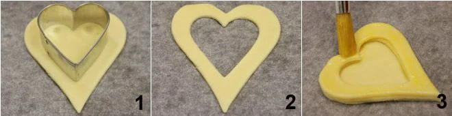 To prepare the puff pastry hearts, start by preheating the oven to 400°F, unroll the puff pastry and using a heart-shaped cutter, cut out 34 hearts, leaving 8 whole while cutting the remaining 16 with a smaller heart cutter (1-2). Stack two cut-out hearts on each solid heart, making sure to brush the surface of each layer to adhere well to the edges 3. Also, brush the final layer of puff pastry well and bake the hearts for about 10 minutes. Remove the puff pastry hearts from the oven and let them cool completely on a rack. It is now time to garnish your little hearts: here are our suggestions (the quantities indicated for each filling are sufficient for 4 little hearts).