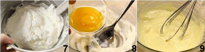 Meanwhile, prepare the mascarpone cream by whipping the fresh cream with 2 tbsps of powdered sugar 7. In another bowl, beat the mascarpone together with the egg yolks and 2 tbsps of powdered sugar 8, then gently mix the two mixtures, being careful not to deflate the cream 9. Put the mascarpone and cream mixture in the refrigerator inside a container with a lid.