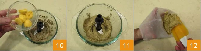 At this point, the eggs will have cooled. Proceed to peel them, cut them in half, and carefully remove the hard yolks with a teaspoon, taking care not to break the egg whites, which you will use later. Take the extracted yolks and add them to the mixture 10. Turn on the blender again and mix the egg and oil to create a homogeneous and lump-free mixture 11. Transfer the mixture into a piping bag 12, which you will use to fill the egg whites internally.