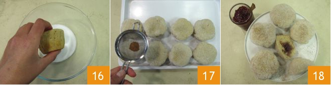 Roll the duffins in granulated sugar to coat them entirely 16, then sprinkle with ground cinnamon 17: your duffins are ready to be enjoyed 18!