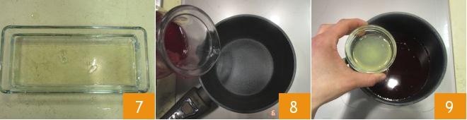 Prepare the gelée: in a small bowl, pour cold water and soak the gelatin sheets for at least 10 minutes 7. Heat the strawberry syrup in a saucepan 8, add the lemon juice 9, and as soon as it reaches just below boiling, turn off the heat.