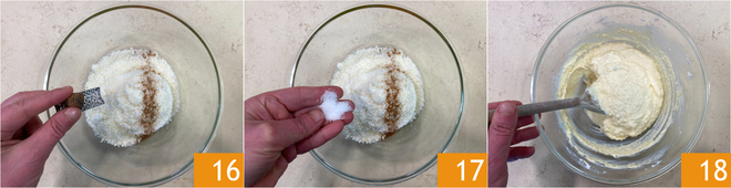 Add the nutmeg 16, salt 17 and pepper, then combine everything 18.