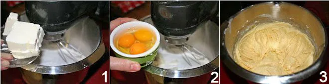 Place the flour, baking powder, vanillin, sugar, salt, room temperature butter 1, 3 eggs, and grated lemon zest 2 into the bowl of a mixer (or in a bowl if kneading by hand). Knead everything by adding as much milk as needed to obtain a rather soft dough but workable with your hands 3.