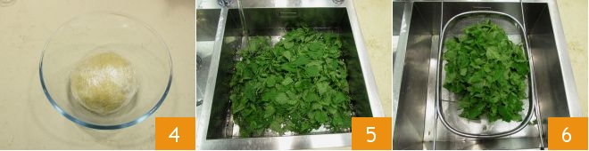 Then wrap the fresh pasta in plastic wrap 4 and let it rest in a cool, dry place for at least 20-30 minutes. In the meantime, focus on the filling: put on disposable kitchen gloves (two pairs are advisable if they are thin), clean the nettles by removing only the tips (you will get 150 g of nettles for the recipe), then rinse them under plenty of running water 5, drain them 6