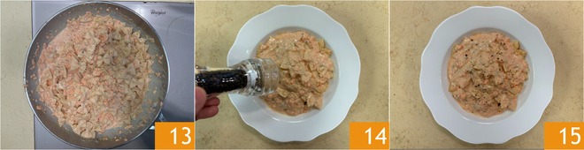 Briefly sauté everything 13. Plate the dish and finish with a grind of pepper 14. Your farfalle with smoked salmon is ready to be served 15!