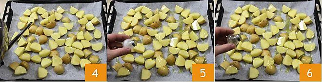 season the potatoes with a drizzle of olive oil 4, salt 5, black pepper 6