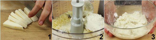To prepare the cheese truffles: remove the rind from the cheeses that have it and cut the fontina and gruyere into pieces 1. Place them in a mixer and finely chop them for a few minutes, then add the ricotta, gorgonzola, and grated Grana Padano PDO 2, and continue to blend for another two minutes, until the mixture has a creamy and homogeneous appearance 3. Then put the obtained cream in a container with a lid and place it in the fridge for at least a couple of hours.