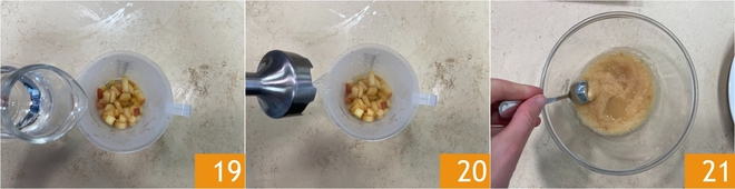 Add the remaining water 19 and blend the apples 20. You should obtain a creamy consistency 21; set aside.