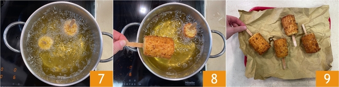 Then in the beaten eggs 4 and finally in breadcrumbs 5. Fry 1-2 pieces at a time in oil at 340°F for about 5-7 minutes 6.