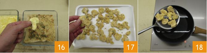 and finally in the breadcrumbs 16. Repeat this process for all and as you go, place the breaded mushrooms on a tray with parchment paper 17. When all are ready, cook a handful of mushrooms in a pot with hot oil at 340°F 18.