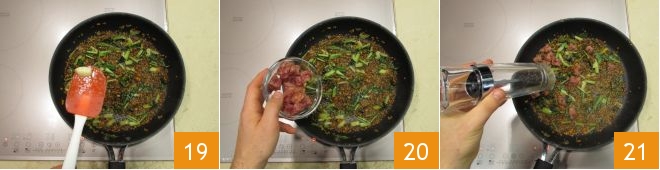 Remove the garlic 19 and finally sauté the cotechino cubes together with everything else for 1 minute 20; season with salt and pepper 21.