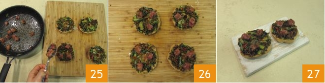 and then with the cotechino cubes 25. Complete all the others 26 and your friselle with lentils and cotechino are ready: enjoy your meal 27!