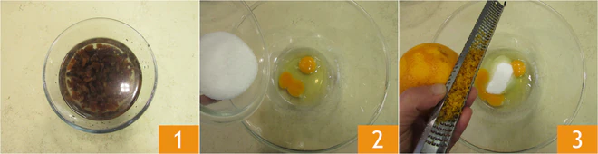 To prepare chestnut fritters, soak the raisins in cold water for about 10 minutes 1. Heat the oil for frying on a low flame. In the meantime, prepare the batter. In a bowl, pour in the eggs and sugar 2. Grate the zest of an orange 3.