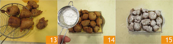Place them on a tray lined with paper towels to absorb the excess oil 13. Then sprinkle the chestnut fritters with powdered sugar 14 and serve immediately 15.
