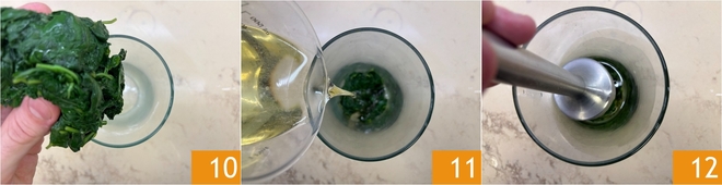 Squeeze it 10 and place it in a jug, then add the seed oil 11 and blend with an immersion blender 12.