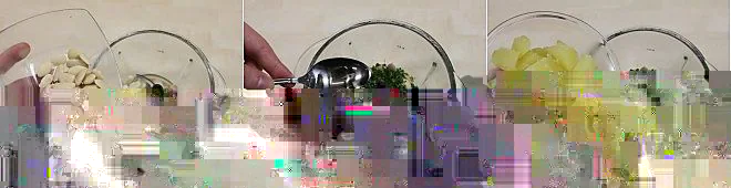 add the peeled almonds 4, parsley, vinegar 5, and potatoes 6,