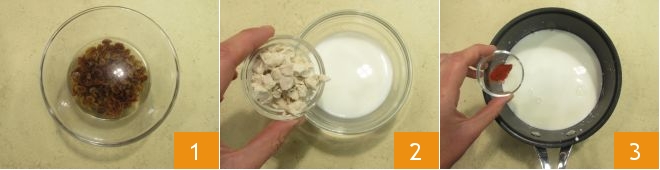 To make the Saint Lucia Buns (Lussekatter), first soak the raisins in lukewarm water for about 15 minutes 1. Dissolve the fresh yeast in 50 g of milk at room temperature 2. In a saucepan, pour the remaining milk and flavor it with powdered saffron 3.