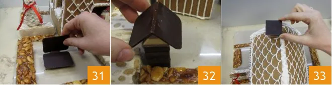 then place a sheet of chocolate: you can create a bench 31 or a small table. With the same elements, you can also make a mailbox 32 and the chimney 33.