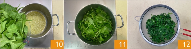 Now add the chard 10 and cook for a few minutes, just enough to soften them 11. Drain the chard to remove excess liquid 12 and let cool.