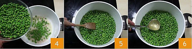 add the peas 4, stir to flavor 5, and let them cook for about 15 minutes, until they are very tender, adding vegetable broth if needed 6, and season with salt.